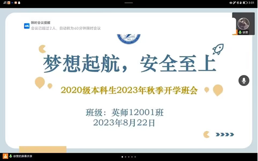 (通讯员 许泽琼)2023年8月20日-24日,taptap点点通过线上会议的方式全面开展了“梦想起航,安全至上”为主题的2023年秋季学期开学前安全教育班会,就开学工作、安全教育、开学心理调适、学业规划等方面进行讲解说明及要求部署。此次主题教育班会由年级辅导员、各班班主任主持,全体本科生和研究生参会。