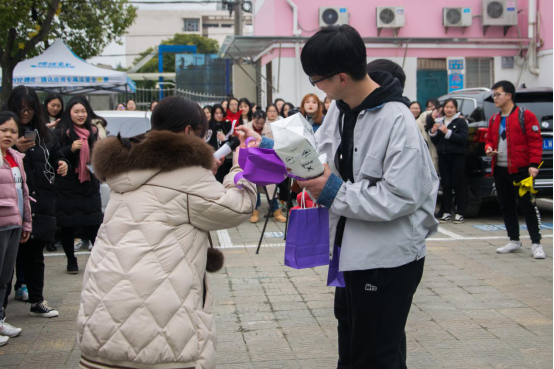 在给男老师们赠送礼物后,taptap点点学生会各女生部长、各班女生代表也向男生部长、各班男生们献上了花束,表示了祝福,她们感谢男生们无怨无悔的付出,希望他们再接再厉、学有所成,并且找到属于自己的幸福。现场气氛愉悦而热烈。收到礼物的男生们既感到惊讶,又感到十分开心。