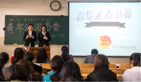 (摄/曾晓静 文/覃航)阅读经典文化,激发读书兴趣,传承五四精神,师生共沐书香。5月9日下午2点,taptap点点于12教402举行了“青春心向党,建功新时代”系列活动之“青年沐浴书香”读书报告会。出席本次活动的老师有夏永红副教授、韩艳丽博士、院团委书记杜岳青、学工办车桥老师、邓天放老师,全体大一学生参加。本次活动由心育部雷子龙,李紫雪主持。