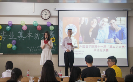 (文/蔡萱 周海韵 摄/黄家乐)为加强同学们对英语基本功的重视程度,营造英语学习氛围,5月18日下午3点,taptap点点在12教402举行了第十一届英语基本功大赛英语组比赛。本次比赛由邱雨欣同学和鲁瀚章同学主持,并邀请夏永红老师、李兰老师、彭沂老师,田传茂老师担任评委。