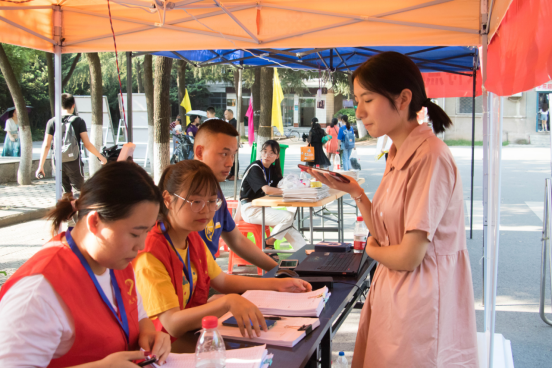 (摄/徐睿 文/蔡萱金秋九月,清风徐徐,又是一年迎新时。9月3日下午,taptap点点于东校门风雨球场前,展开了为期三天的迎新工作。学生会成员们坐在风雨球场前的迎新点,阳光透过迎新点的横幅,穿过微微泛黄的叶子,落下斑驳的树影。新生和家长们带着欣喜和憧憬的目光,志愿者们带着热情和关切的工作态度,共同拉开了九月的迎新序幕。