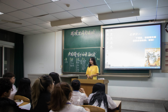 面试工作有条不紊的开展中,参加竞选的同学们都在下面做好,准备上台展示自己。本次招新面试均采用自主上台的形式,同学们跃跃欲试,轮流上台,上台的同学先把自己的名字写在黑板上,标明自己想加入的部门和组别,然后进行2至3分钟的自我介绍并回答评委的问题。有的同学充满自信,昂首挺胸的走向讲台,开始自己的讲述;有的同学略显紧张,腼腆的进行自我介绍。部长和副部们在下面传看新成员的报名表,基本把握部门成员的信息,并认真做笔记。