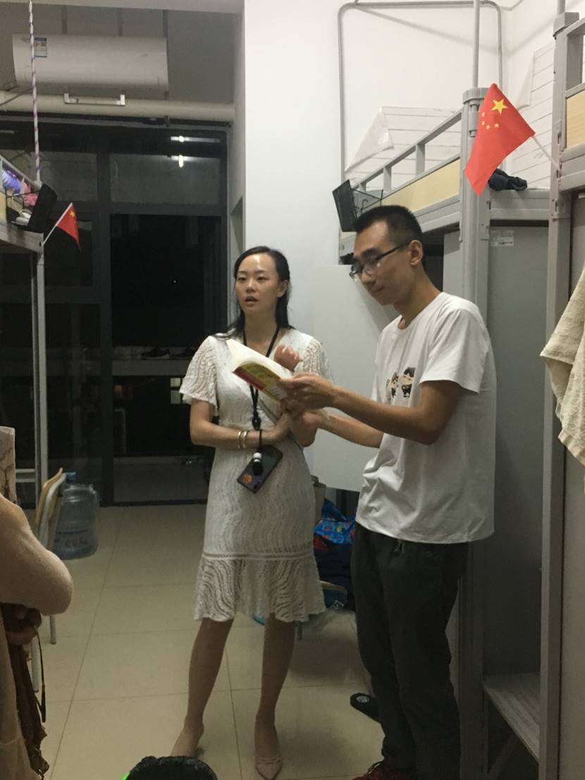 国庆佳节将至,为了提高同学们的安全防范意识,2019年9月27日晚21点,taptap点点分团委书记杜岳青老师和研究生学生会干部应婷,颜倩等人一起走访了学生宿舍,就同学们的学习生活情况进行了解和交谈,并嘱咐大家注意假期安全。