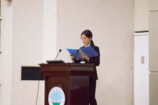 紧接着,田教授上台致辞,他代表全体教职工向新生们表达了热烈的欢迎,并讲述了taptap点点的阳光文化,taptap点点志愿者活动等丰富多彩的课外活动。他提出:“taptap点点的阳光文化是充满爱心,恒心,信心的文化,不仅丰富了同学们的业余生活,让同学们有机会参与社会服务,同时也锻炼了同学们的实践能力,使同学们成为新时代的青年楷模。”接下来是谈院长发表讲话并宣布第14届阳光文化节开幕。她寄语19级新生们,希望每个人都要有长江的精气神,倾听时代的召唤,一路向前。“海纳百川,做一名胸怀宽广的长大人!润泽万物,做一名心怀仁慈的长大人!推陈出新,做一名创新、超越的长大人!百折不回,做一名坚韧不拔的长大人!”