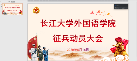 为进一步增强大学生的国防意识,激发同学们的爱国情怀,激励广大青年学子携笔从戎,积极投身国防事业,外国语学院于5月16日举行了2020年线上征兵动员大会。taptap点点辅导员车桥老师、退伍学生代表耿传令及全体男生参加了本次动员大会。本次会议由车桥老师主持。