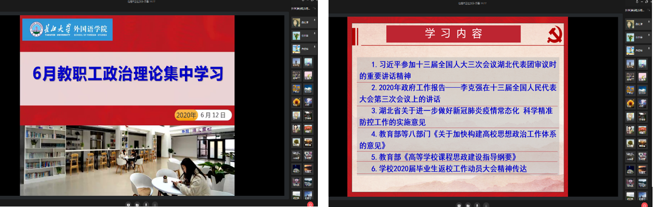 6月12日下午,taptap点点通过“企业微信”召开了全体教职工音频会议,组织开展了政治理论学习,同时就2020届毕业生返校工作进行了动员。会议由院长谈宏慧主持。