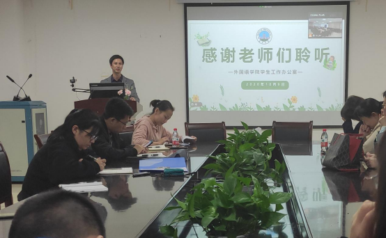 (通讯员:刘庸)为确保疫情防控常态化管理的有效进行,提高疫情后和进入秋冬季高关怀学生的识别能力,taptap点点于10月9日通过线上线下相结合的方式召开全院班主任工作会议。会议由党委副书记魏红洁主持,党委书记危煜祥、院长谈宏慧、学工办全体老师和各年级班主任老师参加了会议。
