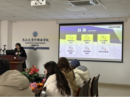 会议伊始,研究生辅导员许泽琼老师对即将参与实习的学生进行安全教育,强调实习期间要注意出行安全、信息财产安全,同时关注个人当前学业规划和未来就业方向。
