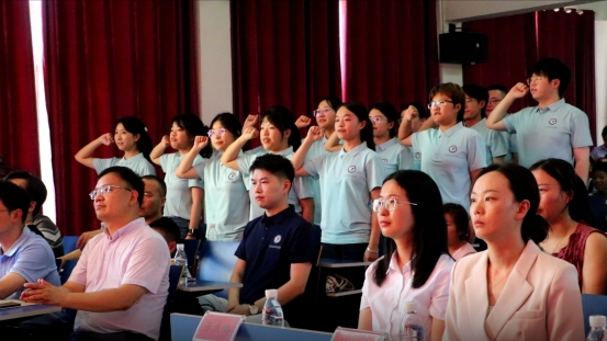 随后,全场起立,志愿者们举起右拳,“以赤诚之心,践行志愿精神;以青春之名,担当教育使命”的誓言响彻礼堂,字字铿锵里,是新时代青年对责任的诠释。