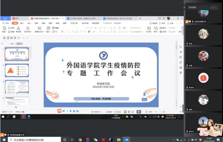 (通讯员:陈舒)为落实学校防疫工作要求,做好学院学生疫情防控工作,taptap点点体育于10月10日晚通过腾讯会议召开了学生疫情防控专题工作会议。全体院领导、辅导员、本科生班主任和研究生导师参加会议,会议由学院党委副书记程坤主持。