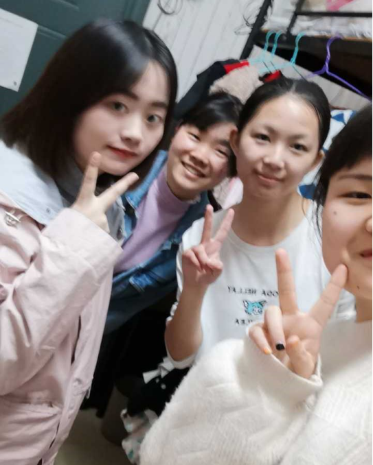 我们是东校区汉科学院2栋314寝室,是由taptap点点体育日语语言11702班两位女生、英语翻译11702班一位女生、商务英语11803班一位学妹组成的四人寝。