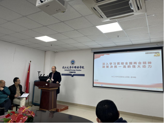 (通讯员 肖娜芸)4月3日上午,全院教职工齐聚文科大楼712会议室,共同参加3月教职工政治理论学习会。本次学习作为首期“发展瞭望台”专题辅导,特邀马克思主义学院院长姜学勤教授作报告,深入学习全国两会精神,为学院高质量发展凝聚思想共识。