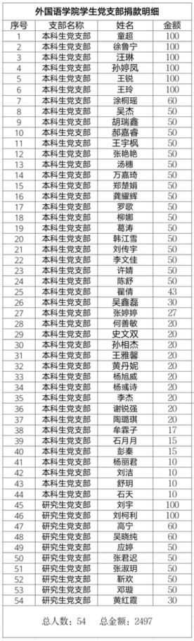 雷锋说:把有限的生命投入到无限的为人民服务之中去。广大学生党员虽然没有固定收入,但大家表示“献爱心,守初心”,学生党员不缺席!在力所能及的情况下,几乎所有的学生党员都献出了自己的心意。一名党员就是一面旗帜,一个支部就是一座堡垒,一份份温暖人心的捐款背后是外院人抗“疫”的实际行动,更是大家的责任担当。同学们纷纷表示,作为一名党员在抗击疫情阻击战中,要用实际行动践行初心和使命,经受住大战和大考。我们人人都是战斗的主角!