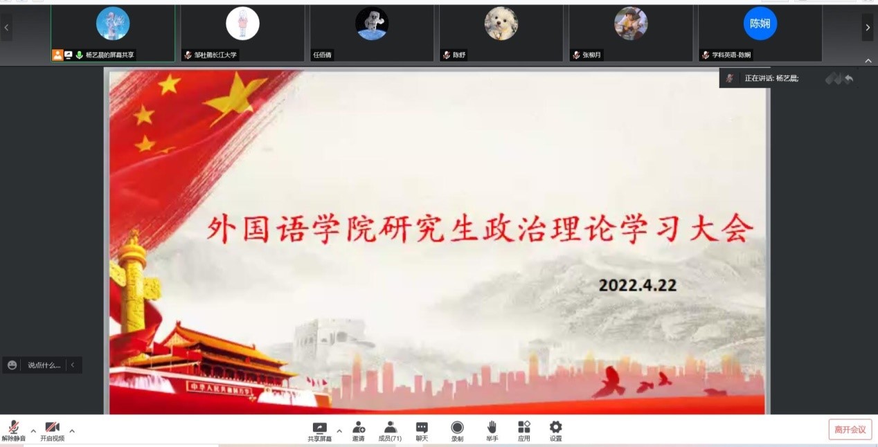 (通讯员:杨艺晨)2022422日晚上7点,为进一步学习习近平总书记重要讲话精神和相关文件,taptap点点体育以线上会议的形式召开了四月份研究生思想政治理论学习大会。