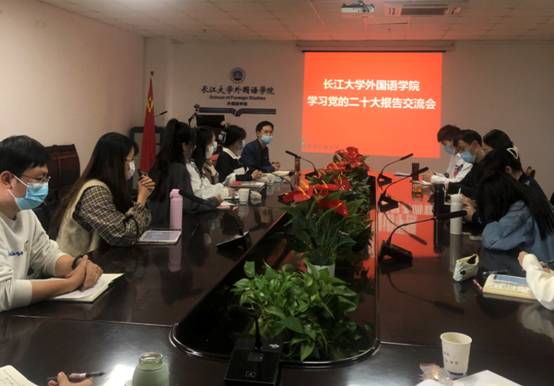 大家在会上热议党的二十大报告。研究生党员陈舒说,党的二十大的胜利召开振奋人心,作为一名学生党员,将牢记身上的使命担当,努力学习,刻苦钻研,争做奋进全面建设社会主义现代化国家新征程的先锋楷模。