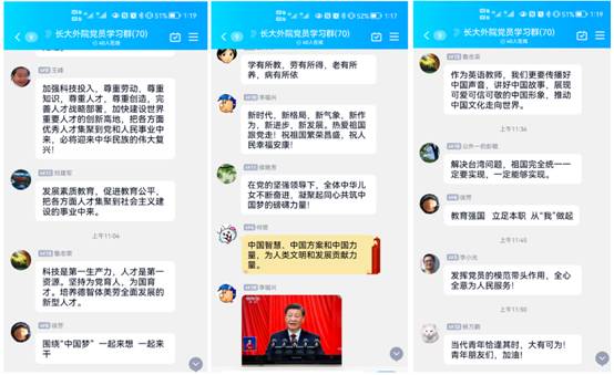 其他师生也在学院微信工作群、QQ工作群等热议党的二十大报告。