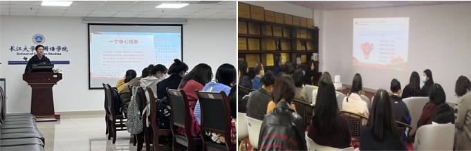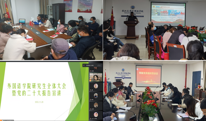 11月24日至28日,副院长谢家成、副院长彭沂、副院长付小秋分别为日语系教师和行政人员、公外教学部教师、全体研究生宣讲了党的二十大精神。党委副书记程坤在与预备党员谈话时也宣讲了党的二十大精神,进一步加深了预备党员对党的认识。