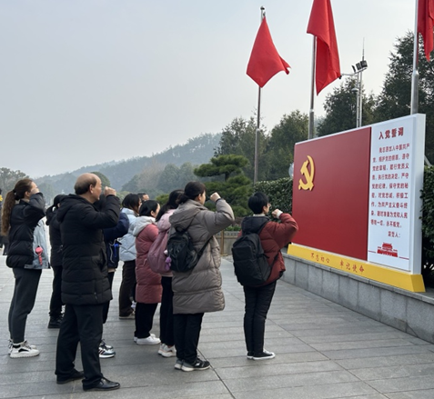 在支部书记徐芳的带领下,支部党员教师参观了毛泽东广场。在党旗下宣誓,并向毛泽东同志铜像敬献了花篮,随后参观了毛泽东同志故居和毛泽东同志纪念馆。