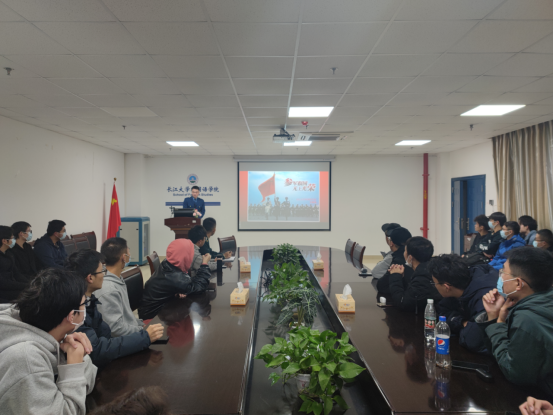 首先,张源缘同学为大家展示了他在部队时拍摄的视频和照片,同学们看到的是军营的刚硬与坚韧、欢乐与泪水,明知很苦但还是会选择去磨练自己、保家卫国的魄力。随后,又和同学们分享了两年军旅生活的所见、所闻、所感,表示在部队中学到了很多,从入伍时的懵懂,到退伍时的富有纪律、崇尚集体。紧接着,聂浩同学为同学们重点讲解了大学生应征入伍的优惠政策和相关条例,以及入伍后地方政府、学校等的一些补助事项,回答了一些想要入伍同学所担忧的问题。
