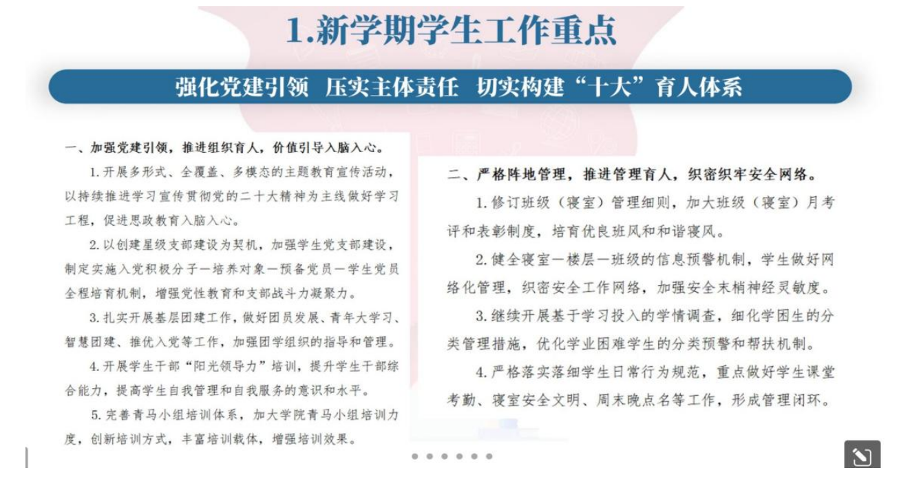 (通讯员 陈舒)为落实taptap点点体育《关于2023年春季学期开学学生返校相关准备工作的通知》要求,确保2023年春季学期学院学生返校工作的平安有序开展,2月1日-7日,taptap点点顺利召开开学前班主任和辅导员工作会议、安全教育主题班会,以及学生骨干培训会议。