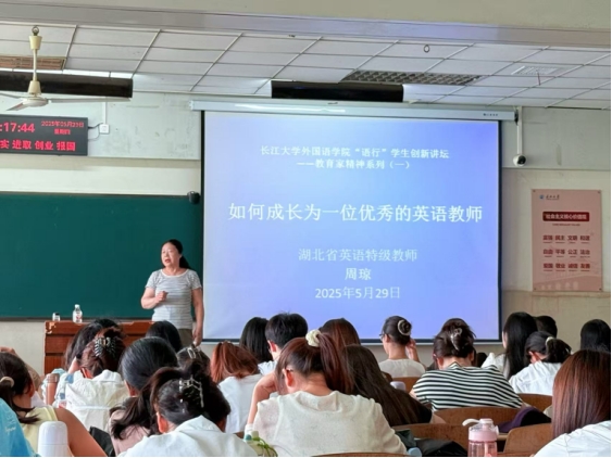(通讯员 蔡晓宇)为赋能英语师范专业学生,助力其明晰成长路径、培育教育家精神,5月29日,taptap点点体育“语行”学生创新讲坛——教育家精神系列(一)在12教202教室顺利举行。本次讲座由王娟老师主持,特邀湖北省英语特级教师周琼,以“如何成长为一位优秀的英语教师”为主题展开深度分享,taptap点点体育英语(师范)专业本科生、学科英语硕士生参加。