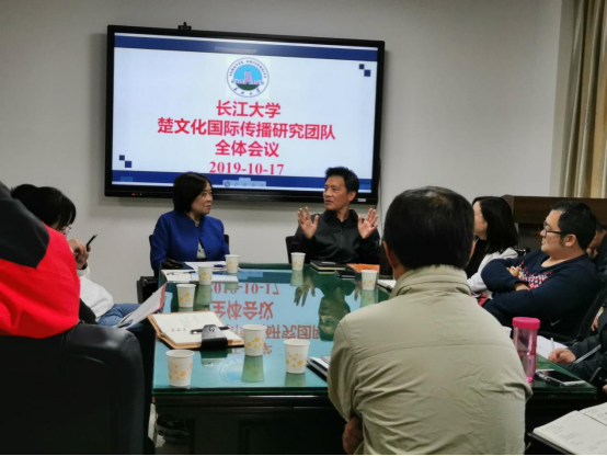 10月17日下午三点,taptap点点体育“双一流”建设科研团队“楚文化国际传播研究团队”2019-2020学年第一学期第一次全体会议在文科大楼814如期举行。本次会议由田传茂教授主持,共包括三个主体环节:田教授宣布会议开始并做了有关楚文化国际传播研究的相关发言;谈宏慧院长和谢家成副院长分别讲话;全体参会教师和研究生进行了学术探讨。