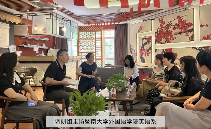 6月12日下午,调研组走访暨南大学taptap点点体育,该院英语系主任朱红强博士以及杨才英、林维燕、沈佳、段凯歌四位老师出席座谈会,双方就人才培养目标、课程设置、大学生创新创业项目开发及学生就业等议题展开了富有成果的探讨。
