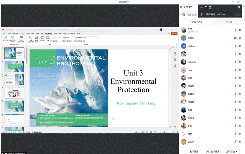 活动焦点聚焦于李方玲同学的20分钟线上无生试讲,通过腾讯会议平台,她以流畅的语言、清晰的思路和环节全面的教学活动,展现了其对于教学内容的深刻理解,充分体现对英语学习活动观和教学评一体化理论的实践。