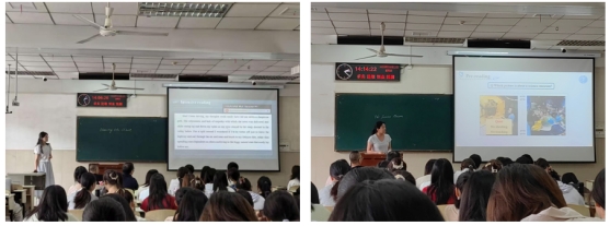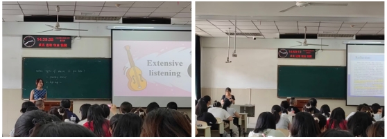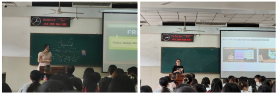 在阅读课型展示环节,张斯雨同学凭借规范的板书设计和标准的语音语调,生动诠释了语言教学工具性与人文性的统一;王琪同学则通过清晰的授课思路和深入的文本解读,创新性地运用思维导图呈现课文内容。钟传银老师在高度评价两位同学教学基本功的同时,特别强调现代阅读教学应当融入分层教学理念,重点培养学生skimming等核心阅读技巧。